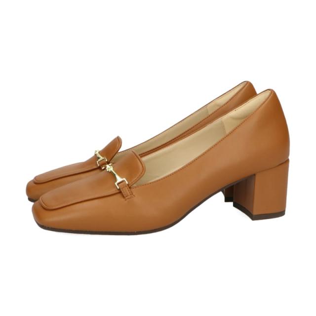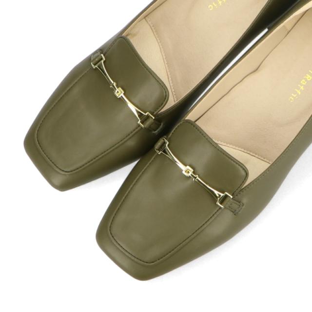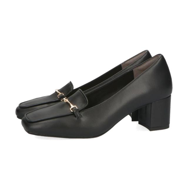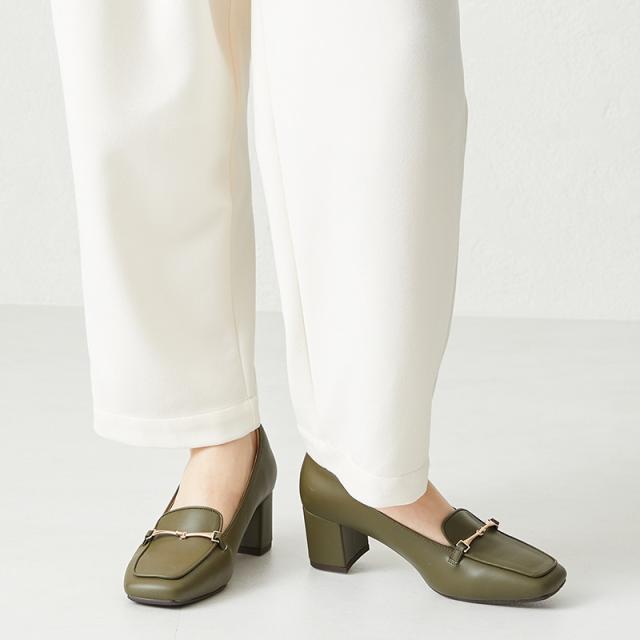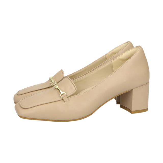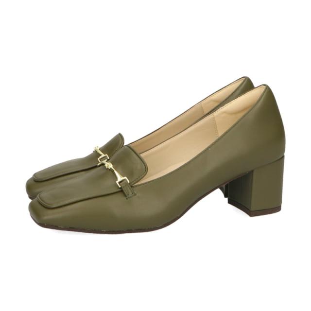 華奢なビットモチーフがアクセントになったヒールローファーは、前滑りを防止する中敷と安定感のある太めのヒールで歩きやすく、長時間歩く日にもおすすめ。