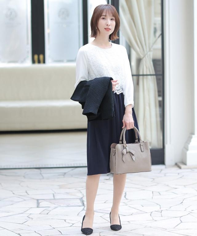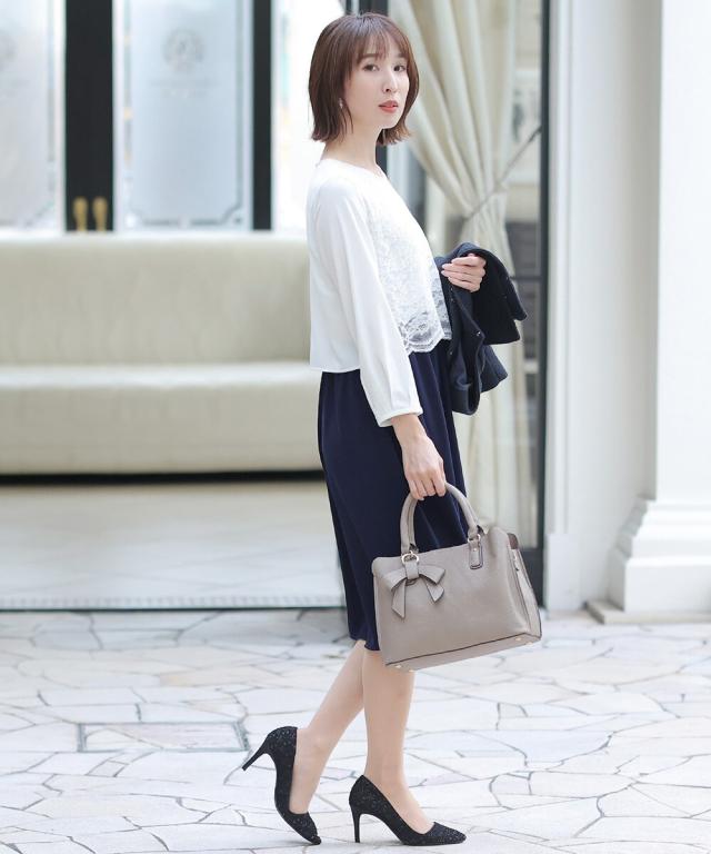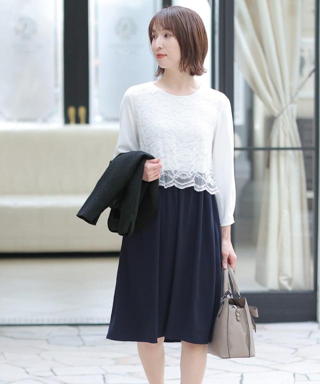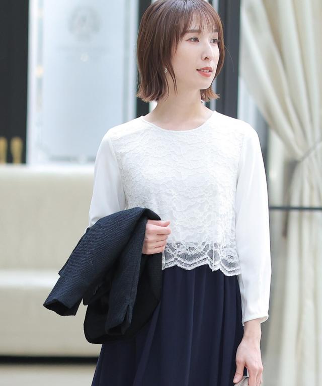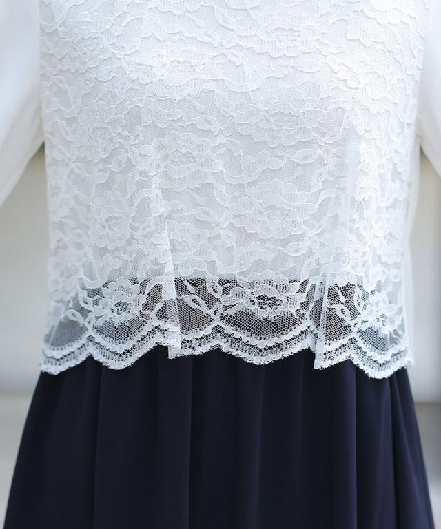 ワンピースのトップス部分は女性らしいエレガントな印象のレース仕様。