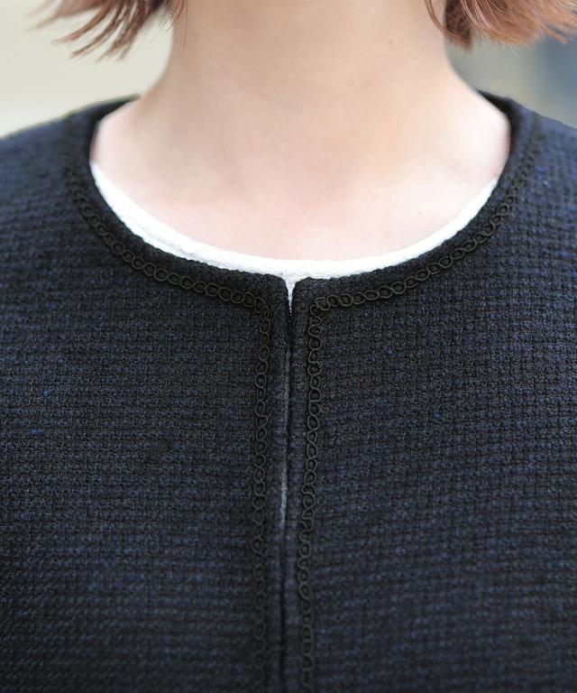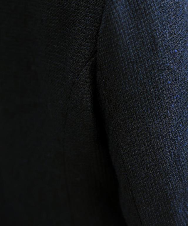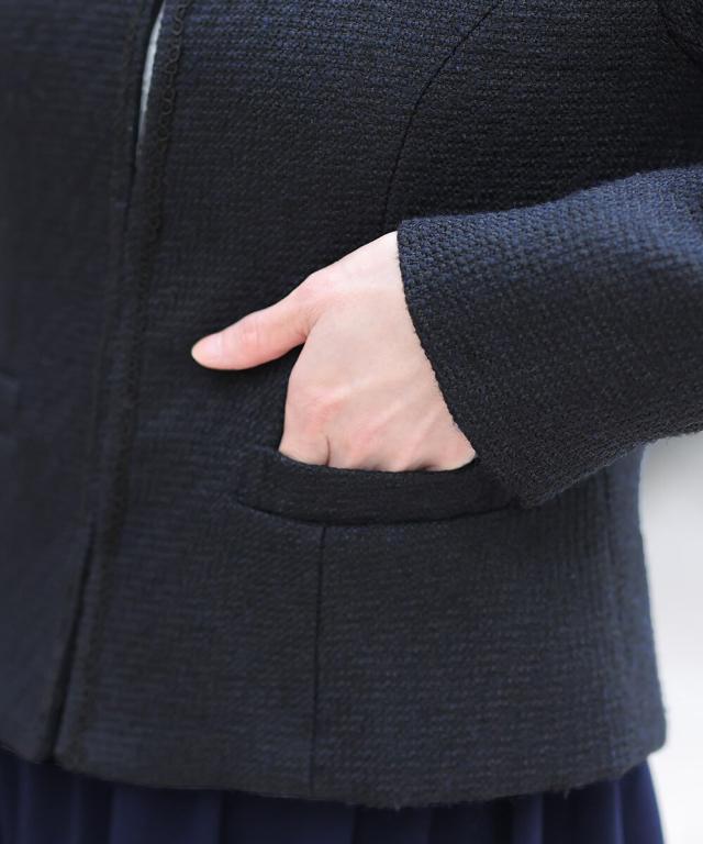 ツイード生地のジャケットはラメ糸仕様でさり気ないラメ感があり、華やかさをプラス。