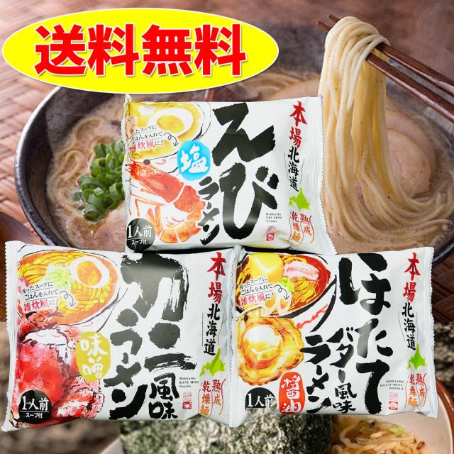 カニ味噌ラーメン ほたてバターラーメン えび塩ラーメン 各1袋 計3袋 セット ポイント消化 お得 麺 乾燥めん ラーメン お家時間 お試し プレゼント バレンタイン ギフト 【送料無料】