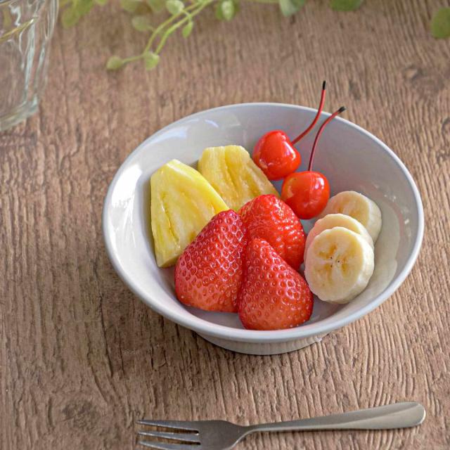 シンプルなデザインでどんなお料理にも合わせやすいボウルです。副菜や和え物、朝食のフルーツやヨーグルトなどを盛り付けるのにぴったりです。
