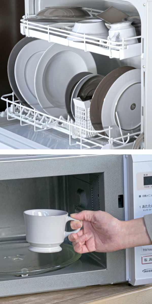 食洗機、電子レンジが使用できるので後片付けや温め直しも簡単です。
