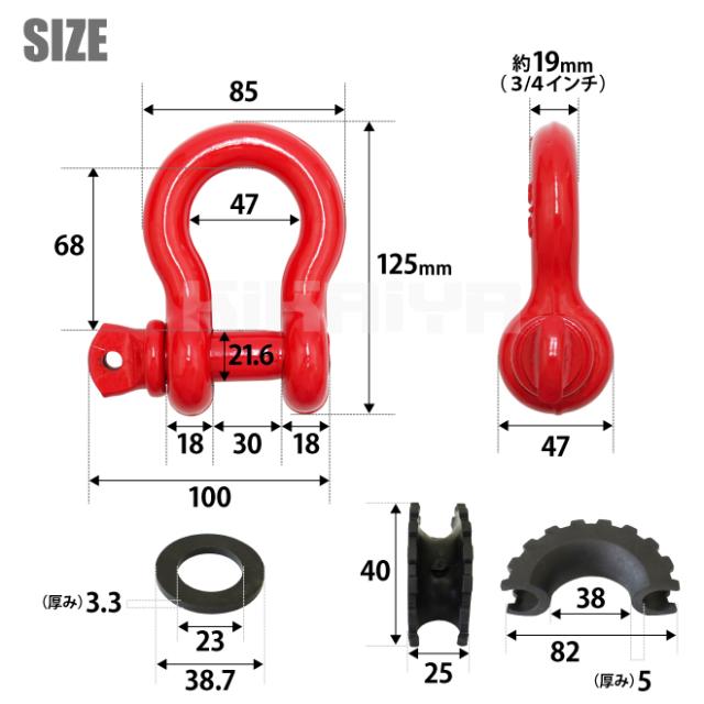 バウシャックル 3/4インチ 4.75トン シャックルアイソレーター シャックルワッシャー カーパーツ 牽引アクセサリー 汎用 ウィンチ ウインチ作業 KIKAIYA