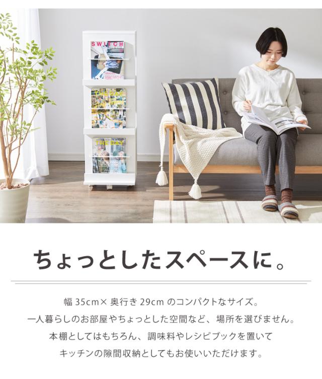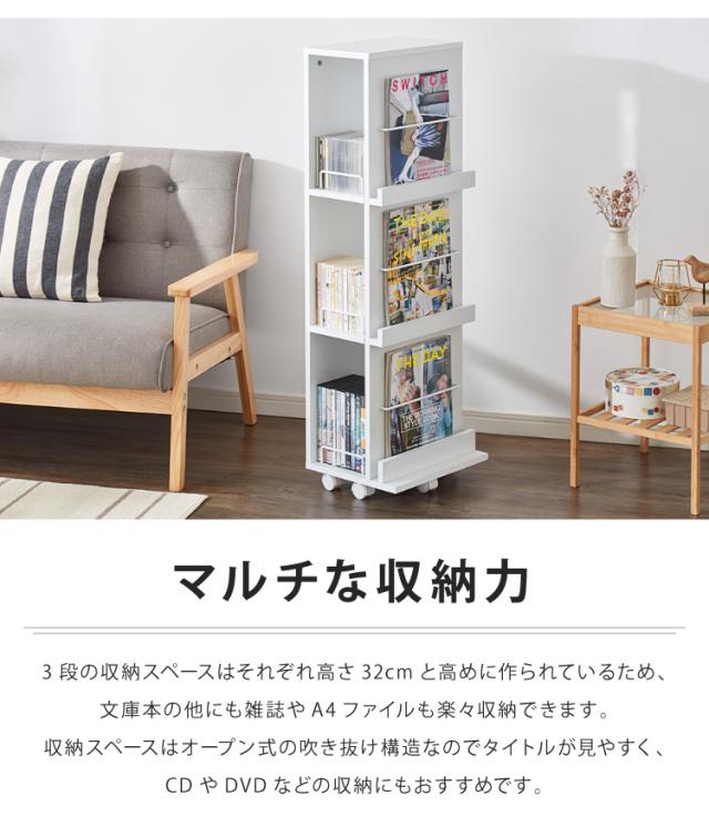 マガジンラック ラック 本棚 キャスター付き 棚 本収納 家具 3段 大容量 ラック ブックスタンド 雑誌 幅35(代引不可)【送料無料】