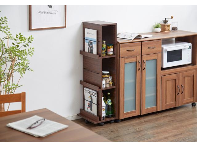 奥行きが29cmととてもスリムなため、お料理本や調味料などを置くキッチン隙間収納としても活用できます。