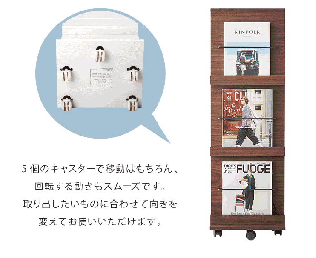 その場で回転できますので、お部屋のコーナー(角)などをオシャレに有効活用できます。