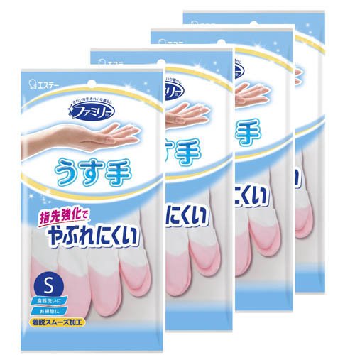 ファミリー 家庭用手袋 ビニール 手袋 うす手 指先強化 Sサイズ ピンク 掃除 洗濯 用(4双セット)[掃除用・炊事用手袋 その他]