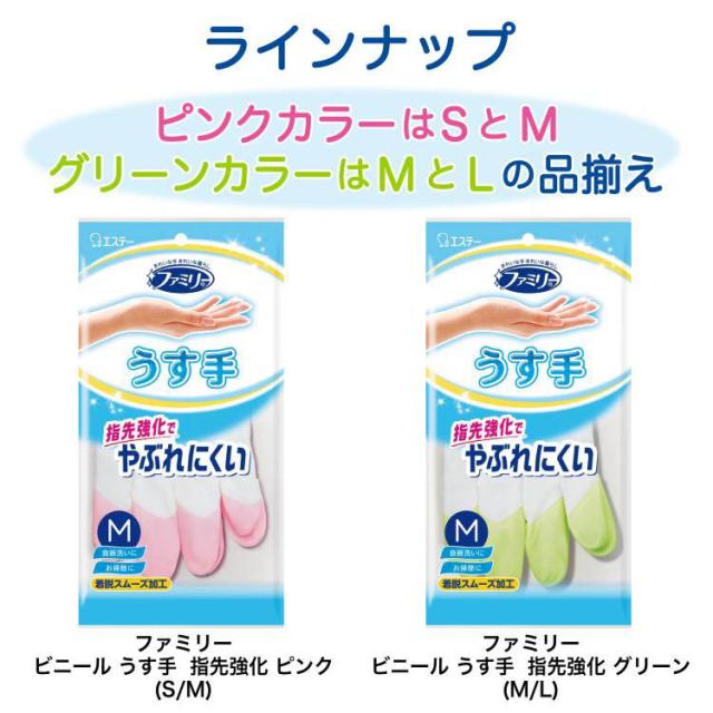 【ファミリー 家庭用手袋 ビニール 手袋 うす手 指先強化 Sサイズ ピンク 掃除 洗濯 用の商品詳細】