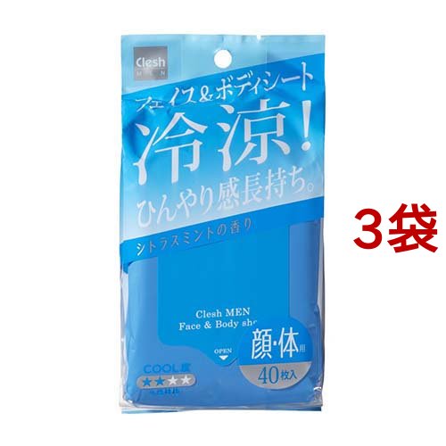 Clesh(クレシュ) MEN フェイス&ボディシート(40枚入*3袋セット)[男性用 あぶら取り紙・フェイスシート]