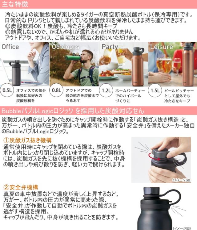 タイガー 真空断熱炭酸ボトル 1.5L MTA-T150 アウトドア レジャー ピクニック スポーツ お弁当 水筒 マグボトル マイボトル 保冷 抗菌
