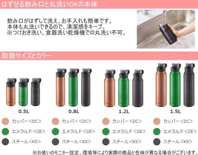 初めて使うとき材料特有のにおいがすることがありますので、内部を熱湯で十分にすすぐという行為を数回繰り返してください。 内容物が噴き出たりすることを避けるために必ずせんの安全弁を押して、安全弁が上下に動くことを確認してからご使用ください。(動かない場合はお手入れしてください) 万一の漏れを防ぐためにも、カバンに入れる際は立てて入れるようにしてください。 飲み物の量が少ないと、充分な保冷効果が効果が得られない場合があります。 寒冷地や周囲の温度が高い場合など、使用環境の厳しい状況では、充分な保冷効果が得られない場合があります。 稀にストラップに白い斑点の箇所がありますが、練り込んでいる抗菌材によるもので、使用上の品質に支障はありません。 つけおき洗い、食器洗い乾燥機での丸洗いはできません。 |