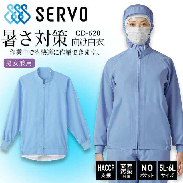 長袖ジャンバー サーヴォ cd620 衛生白衣 サックス 男女兼用 食品工場白衣 上着 抗菌 静電 ストレッチ サービス業 制服 ユニフォーム haccp支援 交差汚染 noポケット 交差 sarvo