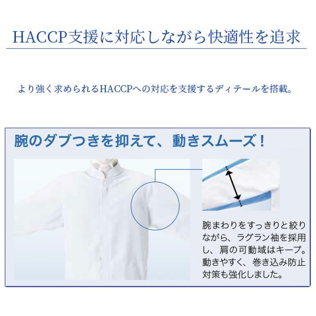 長袖ジャンバー サーヴォ 衛生白衣 cd636 ホワイト 食品工場白衣 上着 抗菌 静電 ストレッチ 工場白衣 サービス業 制服 ユニフォーム haccp支援 noポケット 男女兼用 sarvo