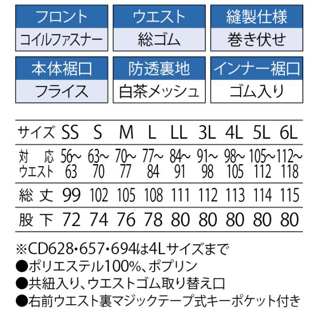 SS:対応ウエスト 56~63cm/総丈 99cm/股下 72cm