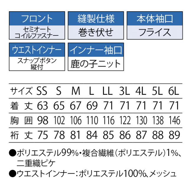 SS:着丈 63cm/胸囲 98cm/裄丈 75cm