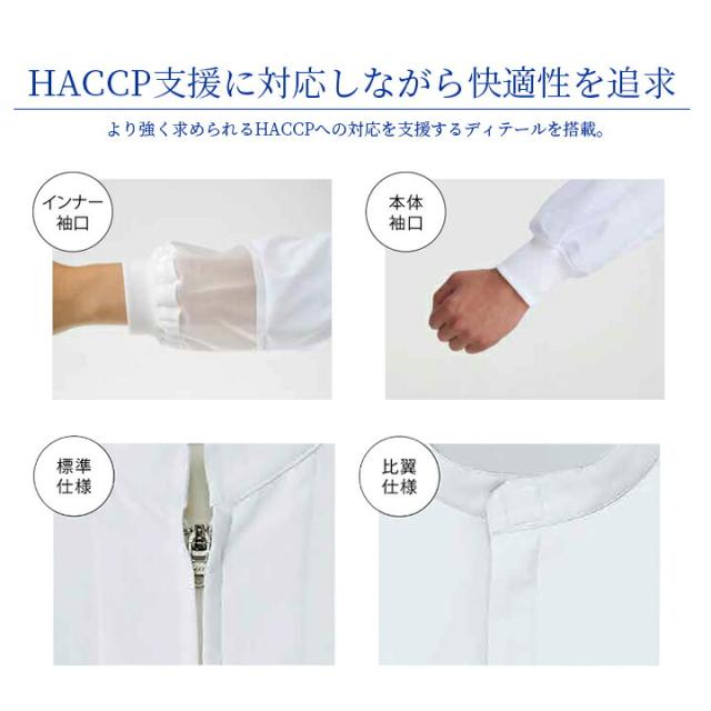 長袖ジャンバー サーヴォ VP621 衛生白衣 ホワイト 男女兼用 食品工場白衣 上着 抗菌 静電 ストレッチ サービス業 制服 ユニフォーム haccp支援 交差汚染 noポケット【5L-6L】sarvo