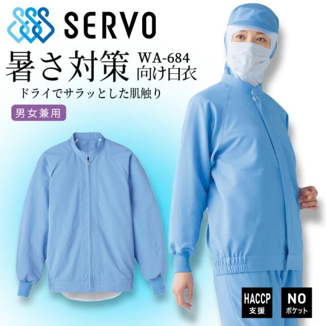 長袖ジャンバー サーヴォ wa684 衛生白衣 サックス 男女兼用 食品工場白衣 上着 抗菌 静電 ストレッチ 工場白衣 サービス業 制服 ユニフォーム haccp支援 noポケット sarvo