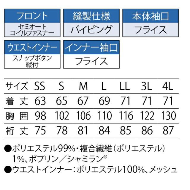 SS:着丈 63cm/胸囲 98cm/裄丈 75cm