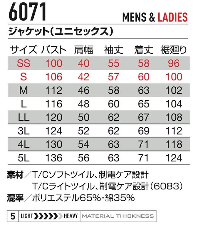 バートル 作業服 上下セット 6071 ブルゾン + 6072 カーゴパンツ 秋冬 男女兼用 JIS T8118適合 T/Cソフトツイル 制電 帯電 ユニフォーム 作業着 BURTLE 6071シリーズ