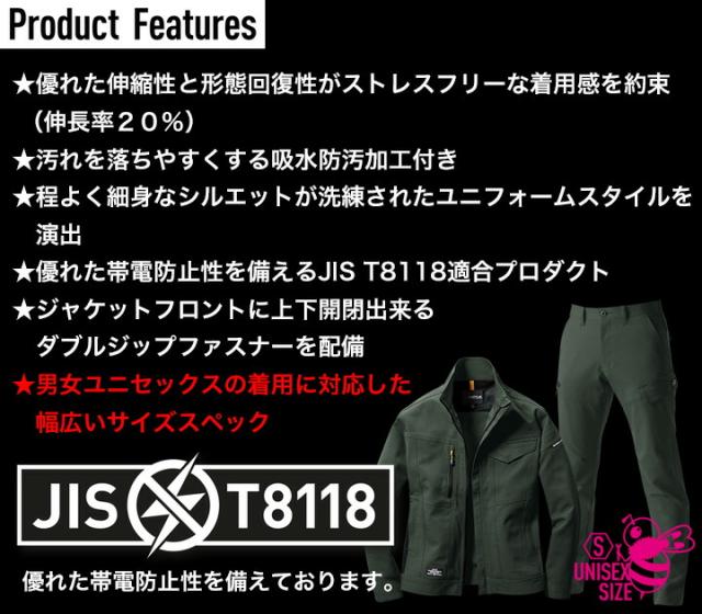 2WAYストレッチツイル(伸長率20%)制電ケア設計、吸水防汚加工