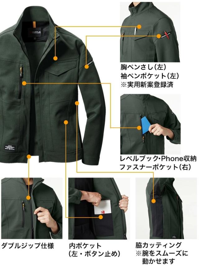 バートル 作業服 上下セット ストレッチ 7301 長袖ジャケット + 7302 カーゴパンツ オールシーズン 男女兼用 ブルゾン 制電 ユニフォーム 作業着 BURTLE 7301シリーズ