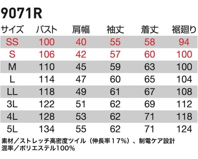 ■仕様:ストレッチ高密度ツイル(伸長率17%)、制電ケア設計