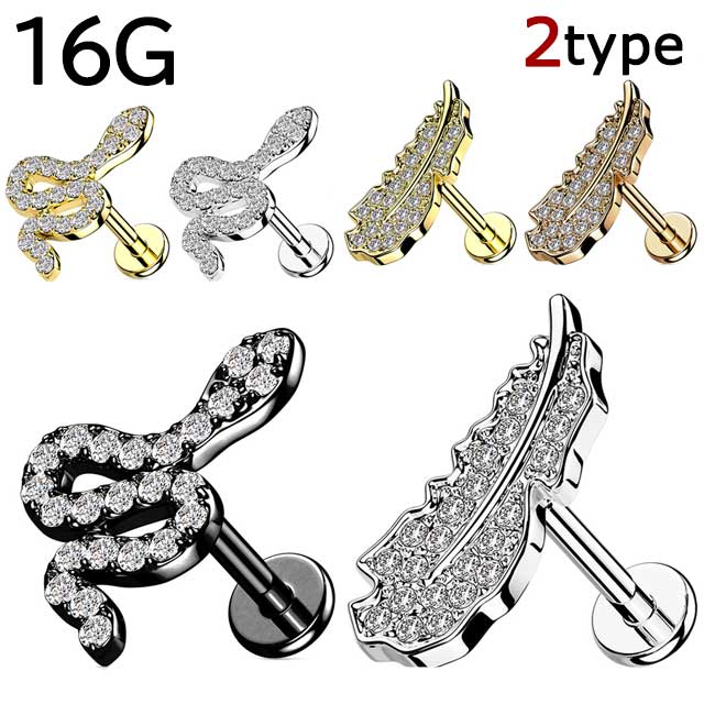 ボディピアス 16G パヴェ CZ スネーク & リーフ インターナル ラブレットスタッド [ 羽根 スネーク ヘビ 蛇 巳 軟骨ピアス 耳ピアス ヘリックス 316L サージカル ステンレス ラブレット リップ ]
