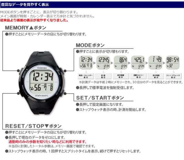 万歩計 歩数計 腕時計型 電波時計 山佐 生活防水 メンズ レディース 男性 女性 高齢者