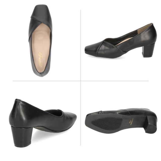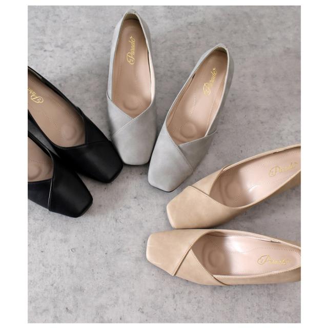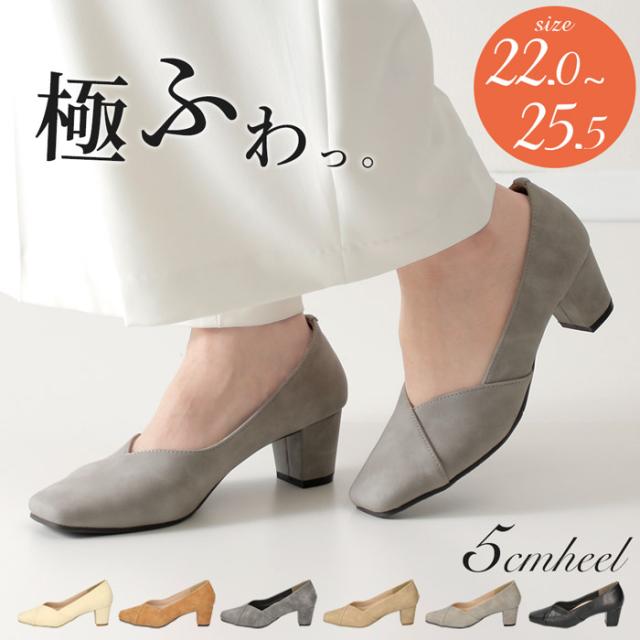 パンプス チャンキーヒール 痛くない ヒール ブラック 黒 5センチ スムース ヌバック レザー調 太ヒール スクエアトゥ 極ふわっ 21115 Parade 靴