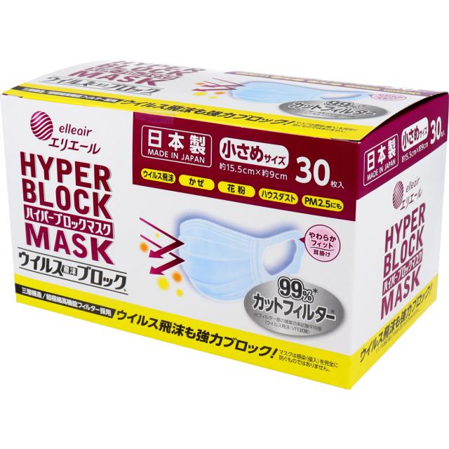 【マスク】【不織布】エリエール ハイパーブロックマスク ウイルス飛沫ブロック 小さめサイズ 30枚入 〈代引き・日時指定不可・沖縄/離島への配送不可〉