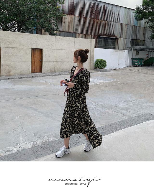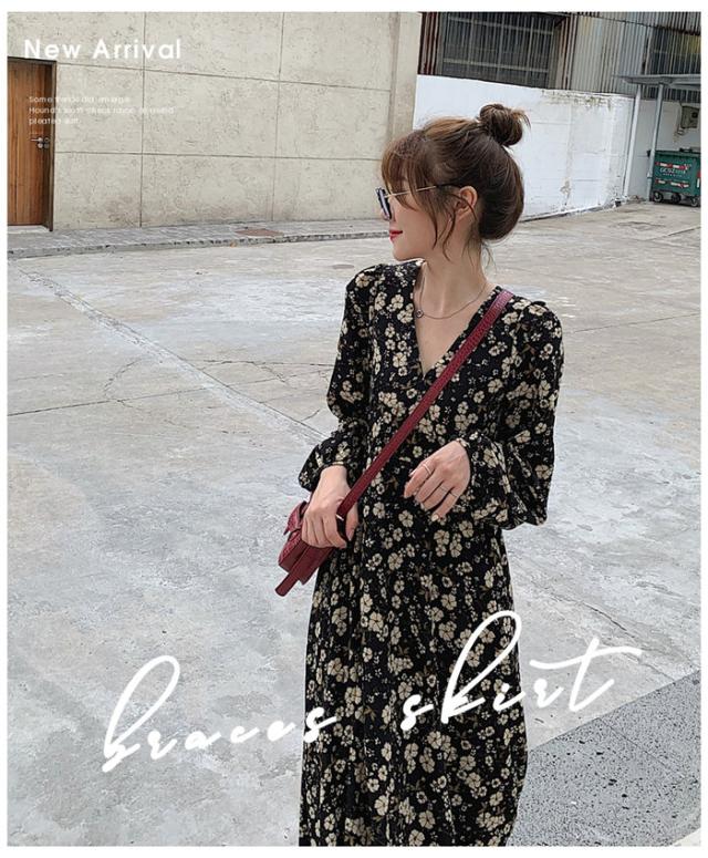 ワンピース ワンピ シフォンワンピース ロングワンピース 長袖 きれいめ 体型カバー 膝下 花柄 秋 冬 半袖 ミディアム丈 ロングワンピ レディース ロング シフォン 大きいサイズ シアー 小花柄 マタ二ティ マタニティワンピース Aライン