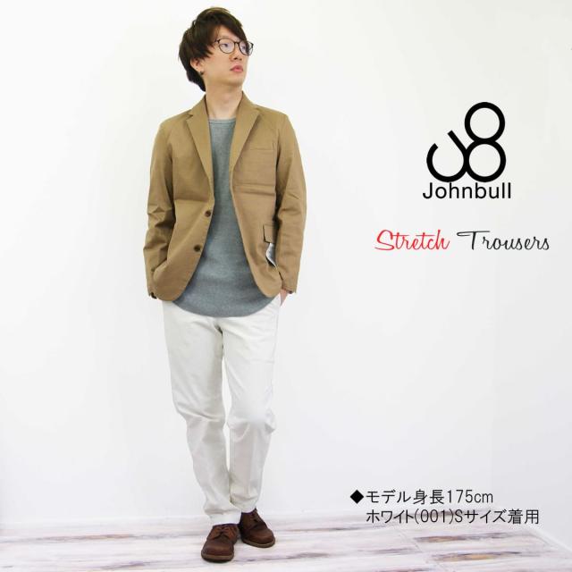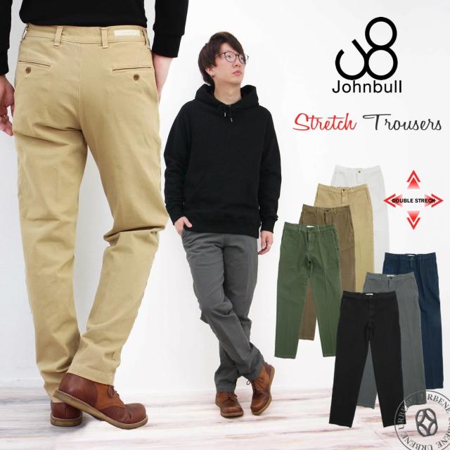 ジョンブル メンズ Johnbull ダブルストレッチ カラー トラウザーパンツ 21489 ストレッチパンツ ロングパンツ ホワイト ブラック チャコールグレー カーキ 股上浅め シルエット 送料無料 MENS おしゃれ アーベン 日本製 普段使い 実用的 新着