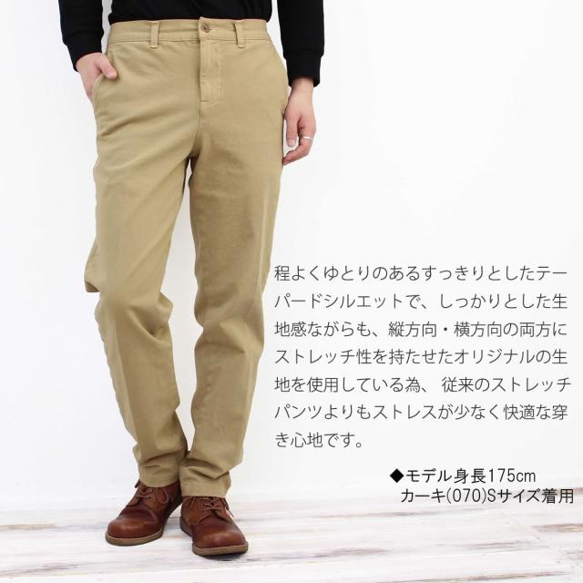 【スタッフ着用感想】 ◆スタッフIURA(身長175cm 普段Sサイズ着用) Sサイズを着用。ベルトは不要でした。 全体的に程よいゆとりのあるテーパードシルエットに加えて、縦にも横にも伸びるストレッチのおかげで窮屈感は無く、ストレスフリーな穿き心地でした |