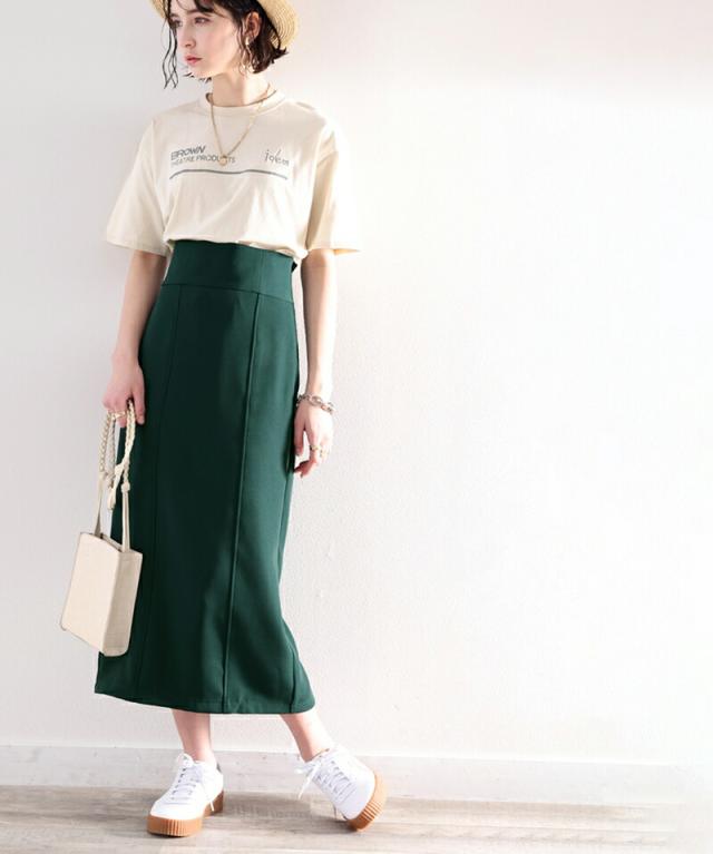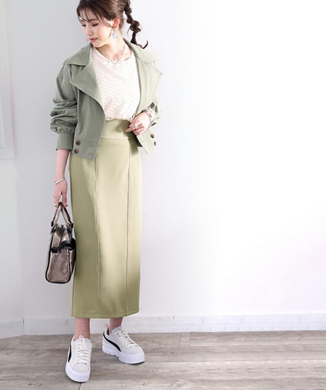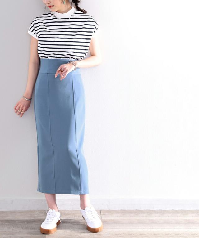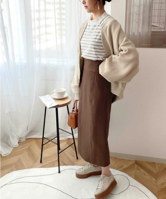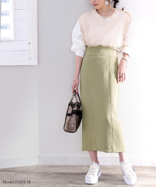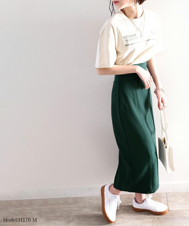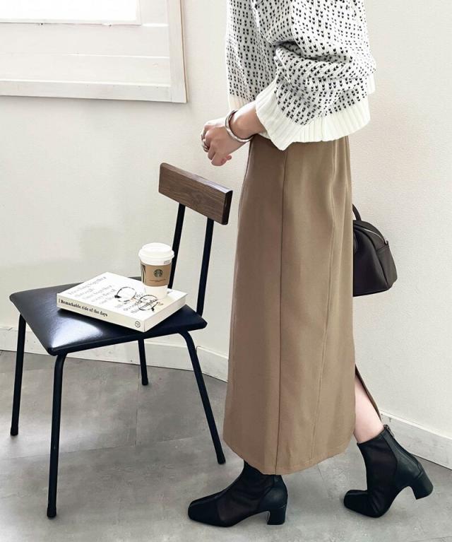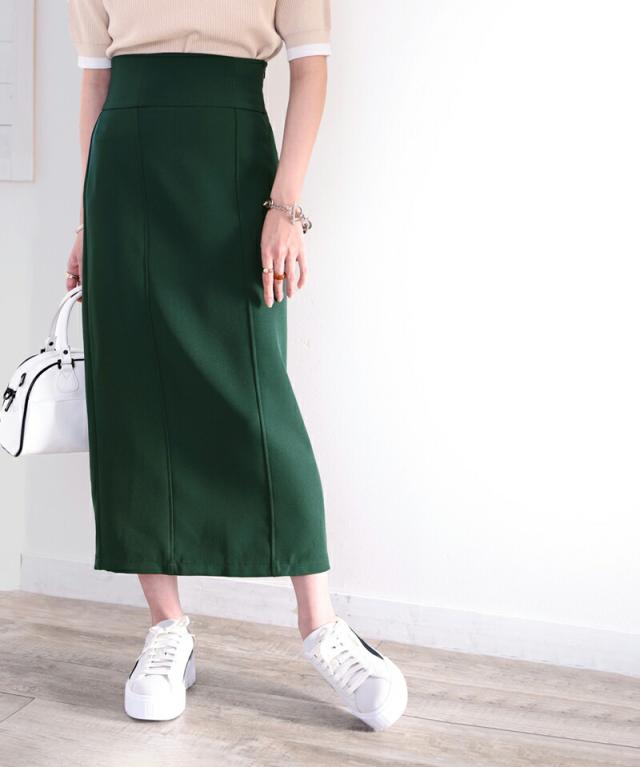 冬新作 クラシカルエルフ レディース 体型カバー ボトムス 大きいサイズ ナロースカート ハイウエスト ストレッチ バックスリット カマーバンド ce0940049