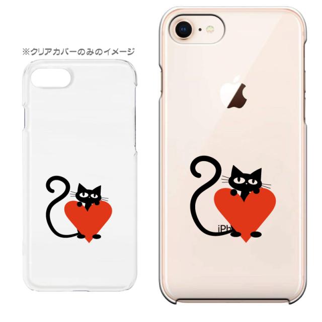 スマホハードケース iPhone13 iPhoneSE2 アイフォン 8 aquos sense GooglePixel xperia galaxyなど多機種制作対応 c9465_黒猫ハートD[透]