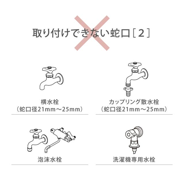 取り付け可能な蛇口は、横水栓と万能ホーム水栓(蛇口外径14-18mm)です。