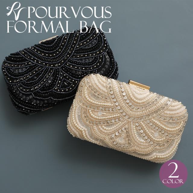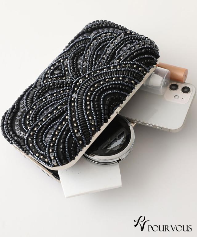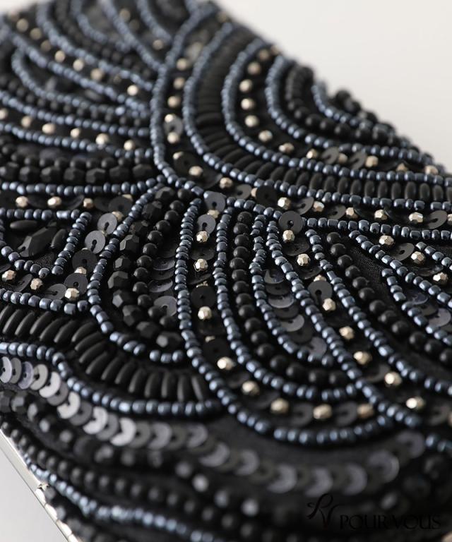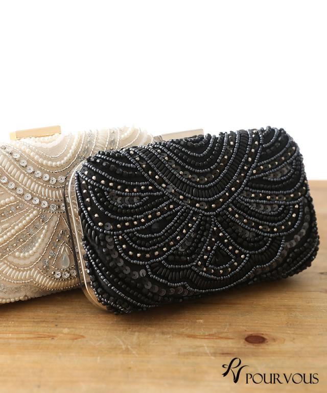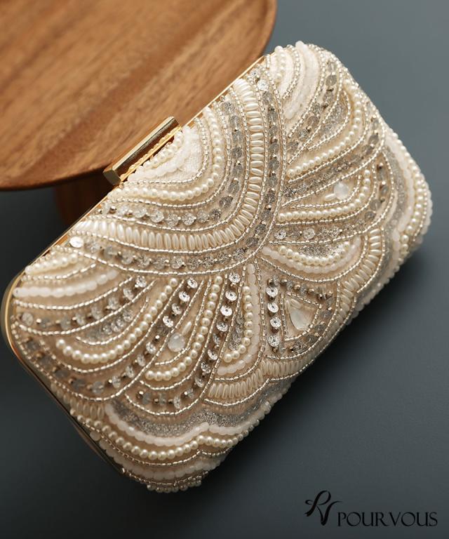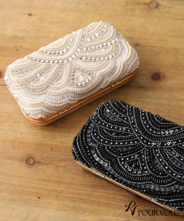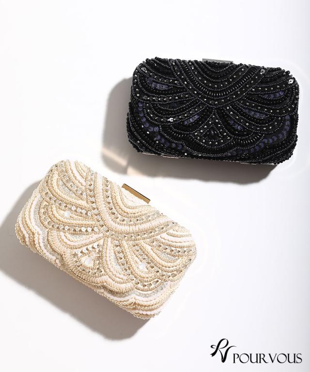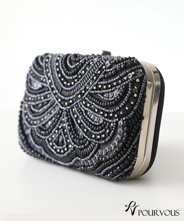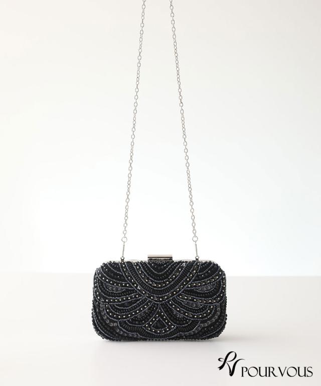 スパンコールとビーズの刺繍が華やかなボックスタイプ。