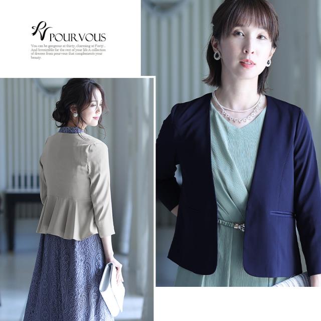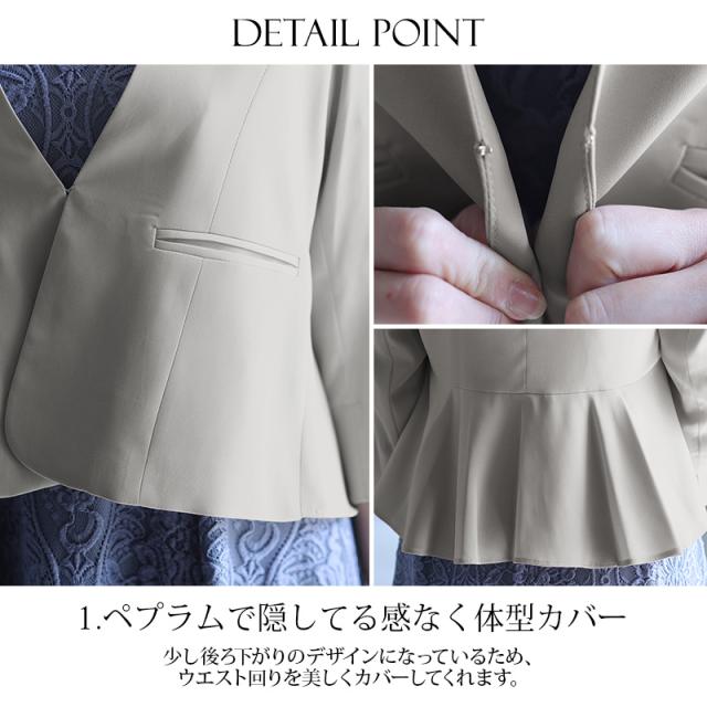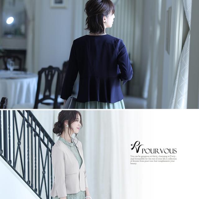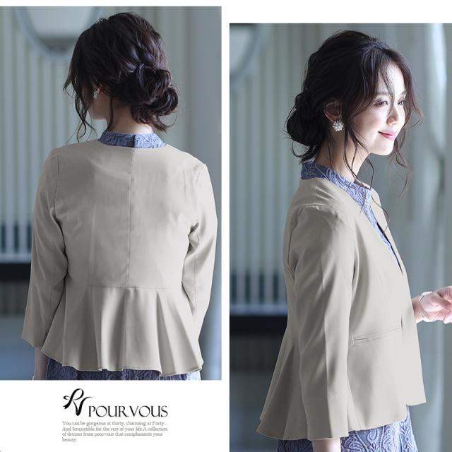 バックペプラムジャケット【879212024】20代・30代・40代・50代半袖・袖あり・伸縮性・ペプラム・フォーマル・カジュアル・ボレロ・ショート丈・脚長効果・ブライズメイド・レース・体型カバー・シンプル・小さいサイズ・3Lや4L・・即日発送・送料無料・結婚式・婚活・披露宴・顔合わせ・二次会・同窓会・お呼ばれ・食事会・謝恩会・親族・七五三・お宮参り・女子会・デート・入学式・卒業式・入園式・卒園式・ママ・マタニティー・セレモニー・セレブ・パーティー・冠婚葬祭・弔事