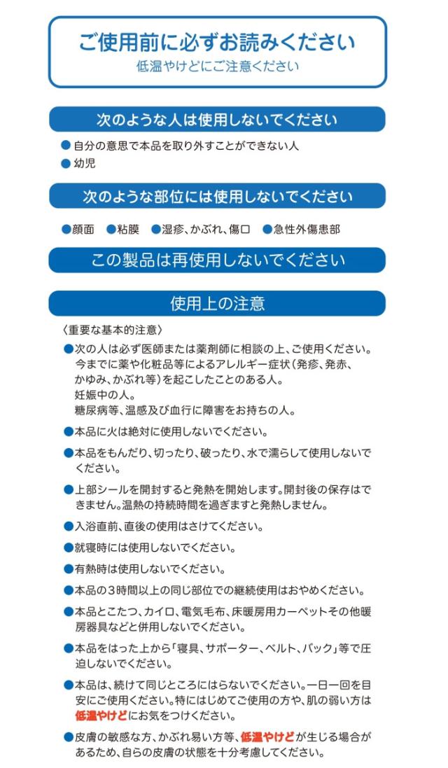 | サイズ・スペック | 持続時間/約3時間 皮膚面平均温度/約40〜50℃ |