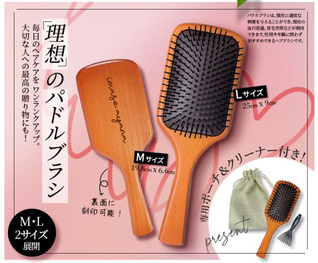 木製ヘアブラシ 大きめ パドルブラシ Mサイズ 名入れ無料 木製ヘアブラシ パドル ブラシ ナチュラルウッド くし 頭皮 マッサージ 頭皮マッサージ ヘアケア ヘッドマッサージ