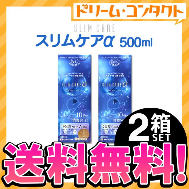 ◇《送料無料》スリムケアα 500ml レンズケース2個付 2箱 送料無料 エイコー EIKO 洗浄 すすぎ 消毒 保存液 ソフトレンズ用 時短