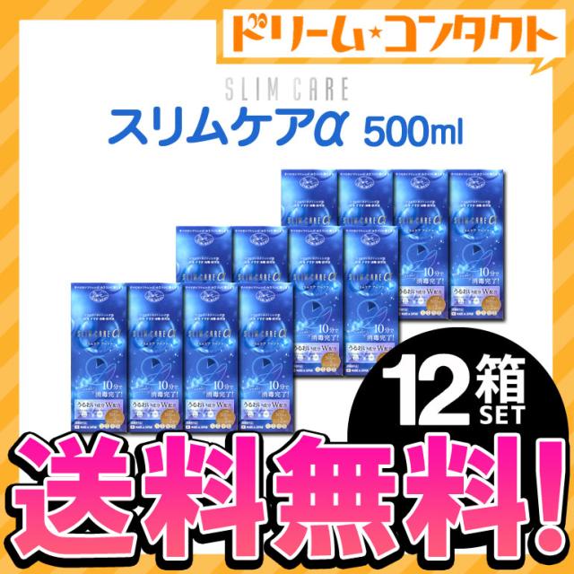 ◇《送料無料》スリムケアα 500ml レンズケース2個付 12箱 送料無料 エイコー EIKO 洗浄 すすぎ 消毒 保存液 ソフトレンズ用 時短