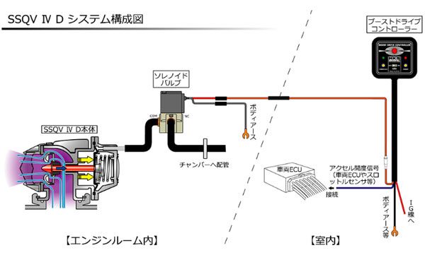 新設計SQV4D本体をブーストドライブコントローラーにて電子制御した正圧作動方式のSQVシステムです。
