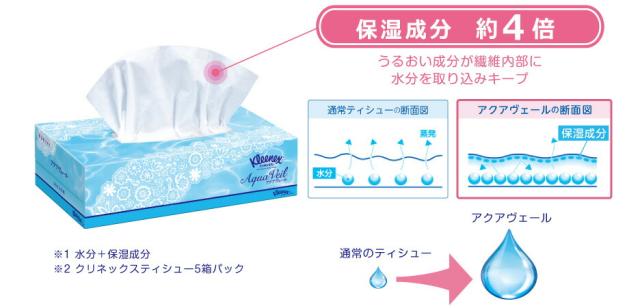 ティッシュペーパー 箱ティッシュ 花粉症 顔まわりをやさしくふき取るための、お肌専用品 クリネックス ティシュー アクアヴェール 180組(5箱入)