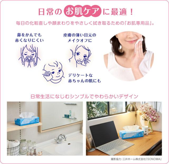 毎日の化粧直しや顔まわりをやさしく拭き取るための、お肌専用ティシュー