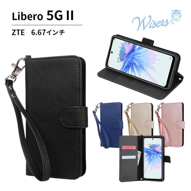 wisers ストラップ2種付 スマホケース ZTE Libero 5G II 6.67インチ Y!mobile スマートフォン スマホ 手帳型 ケース カバー