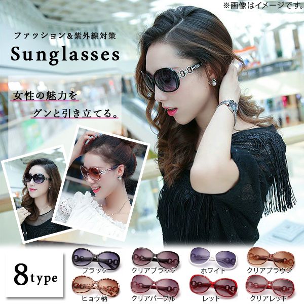 AP サングラス オーバル型 女性の魅力をグンと引き立てる! UVカット 選べる8カラー AP-AR089 カラー: ブラック ホワイト レッド ヒョウ柄 クリアブラック クリアブラウン クリアパープル クリアレッド