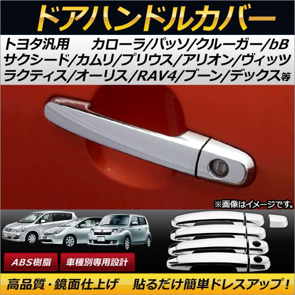 AP ドアハンドルカバー ABS トヨタ汎用 AP-XT166 入数:1セット(9個) ハンドルカバー カバー ガード ドアノブカバー クロームメッキカバー メッキカバー クロームカバー ドアノブ ハンドル 取っ手 ノブ プロテクター FIELDER SPACIO ist PASSO IPSUM KLUGER Highlander Succeed AVENSIS WINDOM VEROSSA CAMRY PRIUS PREMIO MARK2 BLIT PROBOX WILL ALLEX RUNX VOLTZ CALDINA プロテクト ドア 保護 キズ防止 傷付き防止 防止 キズ 傷 樹脂 ガーニッシュ リム トリム ベゼル メッキ メッキパーツ シルバー クローム 銀 鏡面 外装 外装パーツ パーツ エクステリア ドレスアップ カスタム カスタマイズ 装飾