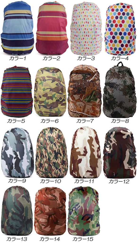 リュックサックカバー レインカバー バックパック ナップザック リュック ザック 鞄 バッグ カバー リュックカバー バッグカバー 防塵 防雨 撥水 雨よけ 汚れ 泥 雨 風 雨具 対策 ハイキング トレッキング 登山 スポーツ アウトドア 通勤 通学 自転車 荷カゴ 荷かご 荷台 前カゴ 前かご 旅行 キャリー ケース 軽量 コンパクト 被せる 覆い 装着 保護 S M L サイズ 18 20 25 30 35 40 45 50 55 60 65 70 75 80 リットル リッター 迷彩 ストライプ 縞模様 水玉 ドット 柄 模様 パターン カモフラージュ カムフラージュ かっぱ カッパ 合羽 レインウェア