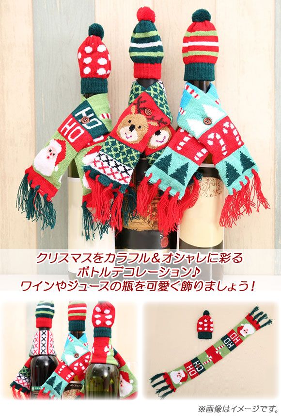 AP ボトルデコレーション クリスマスデザイン トッパー マフラー&帽子 MerryChristmas♪ 選べる3バリエーション AP-UJ0408 バリエーション: タイプ001 タイプ002 タイプ003